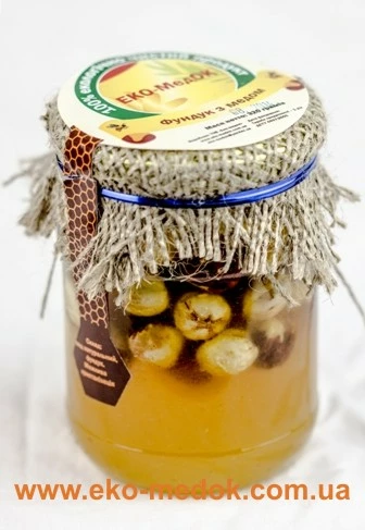 Мед з фундуком підвищує захисні сили організму, має антибактеріальну дію. Вміщені в ньому вітаміни групи В і вітамін Е необхідні для нормального функціонування серця, м'язів і репродуктивної системи людини.